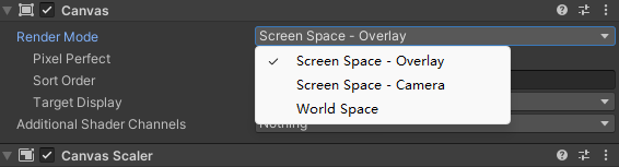 World Space:完全的3DUI,常在VR中使用,远小近大的效果